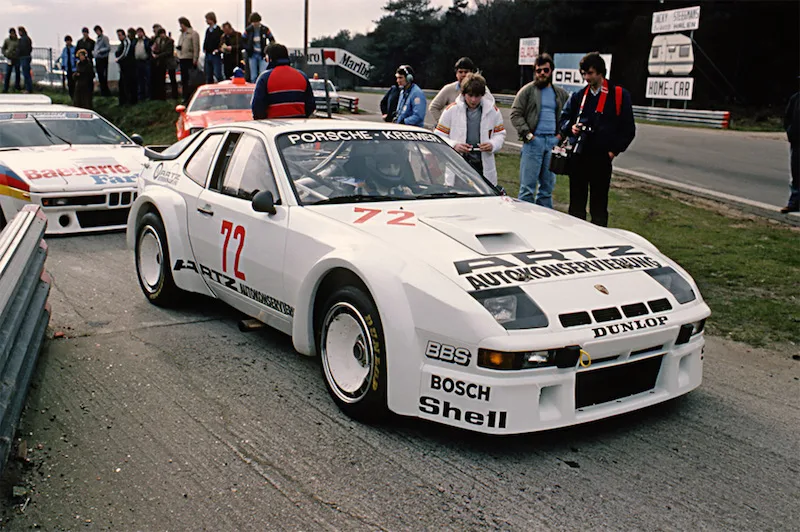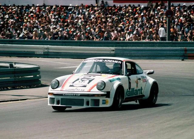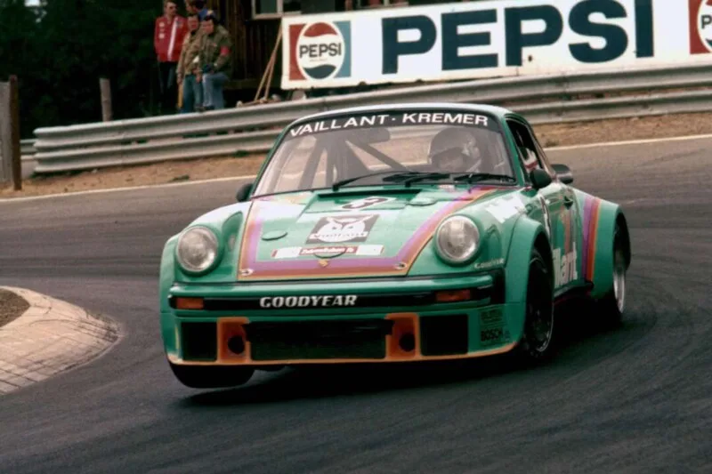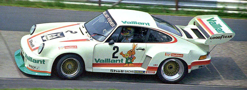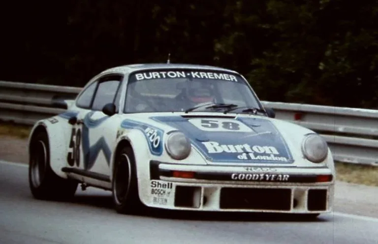 Kremer Porsche 911 RSK – 3.0 liter Porsche 911/75 – flat-6, approx. 330 hp. Dunlop tires. Weight 900 kg. Steel monocoque.