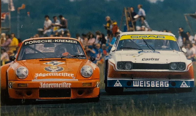 1975 Nürburgring 1000 km, Porsche Carrera RSK. The improved 3.0 liter Porsche 911 Carrera RSR appeared in 1974 and was available for the Porsche privateer teams like Loos, Moritz, and Kremer like this one that won GT class in this years Nürburgring 1000 km. Kremer named the RSR’s that were prepared by them RSK.