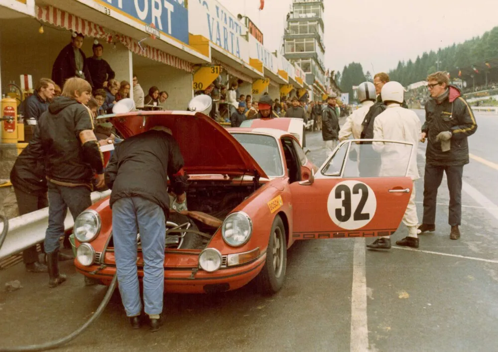 1968 Spa-Francorchamps 24h, Porsche 911 L. 1968 was only the 5th running of the 24-hour race at Spa-Francorchamps. It already was very popular with teams and spectators. The battle went on between the fast Alfa Romeo 1600 GTA’s and Porsche 911’s that had a small 2-liter engine in those years. The Porsche 911L prepared by Kremer took victory in a time that Erwin Kremer himself drove as well.