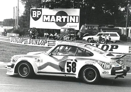 1976 Le Mans 24h, Porsche 934. Only 2 years after the debut of a turbocharged 911 prototype on the racetracks, the car was available for road use and homologated for Group 4 and 5 racing. This 934 finished 4th in class in this year’s Le Mans. French lady driver Marie-Claude Beaumont wasn’t even the fastest lady, Anne Charlotte Verney finished even higher in a group 5 Porsche 934.