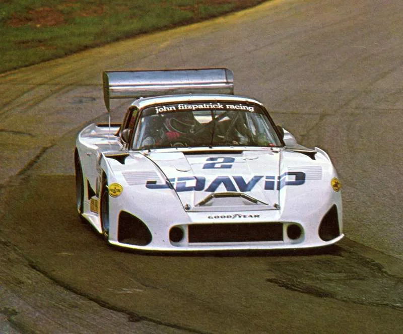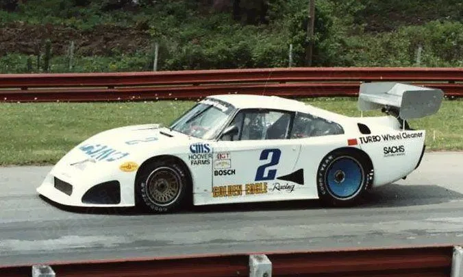 1982 IMSA Championship, Porsche 935 K4. John Fitzpatrick bought the Kremer K4 in which he had raced in 1981. He shipped it to the USA where he competed in the IMSA Series. The car was modified according to IMSA GTX rules, where the doors don’t have to be the original shape, which was the case in group 5. John won the 1 hour race at Lime Rock and together with David Hobbs, he also took victory at Mid-Ohio. Fitzpatrick also had a Joest Moby Dick replica 935 that he used at Le Mans. In the background the Dick Barbour Kremer K3 with which Barbour and Fitzpatrick won the IMSA championship in 1980.