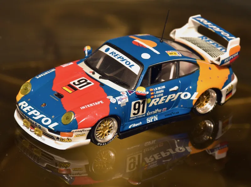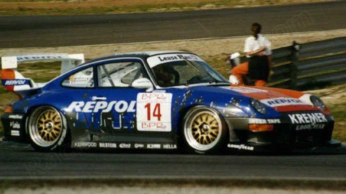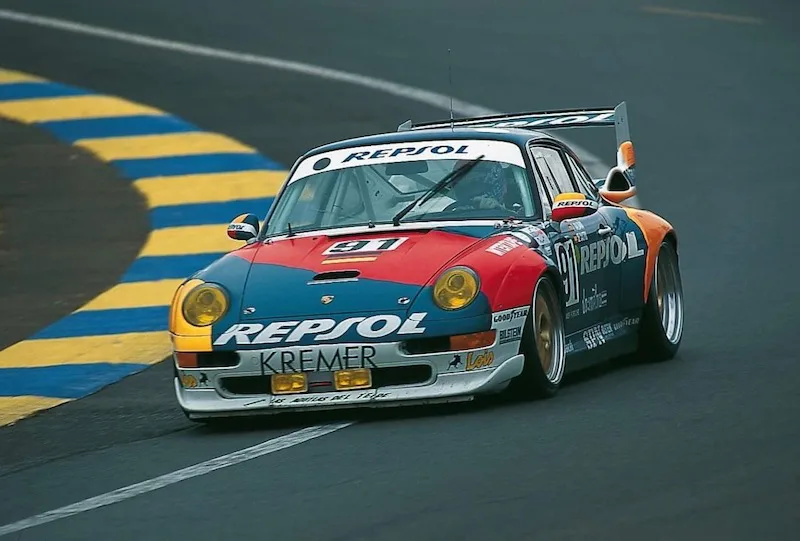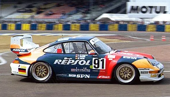 1995 Le Mans 24h, Porsche 911 GT2. Heico Motorsport entered this GT2 Porsche with Spanish Repsol money and Spanish drivers. The car was run by the experienced Kremer Racing, but crashed out of the race early.