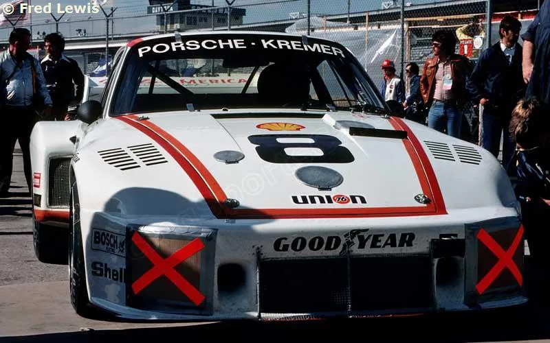 Kremer Porsche 911 Carrera RSR – 2.8 liter Porsche 911/72 flat-6 injection, approx. 300 hp. Dunlop tires. Weight 830 kg. Steel monocoque, chassisnr. unknown