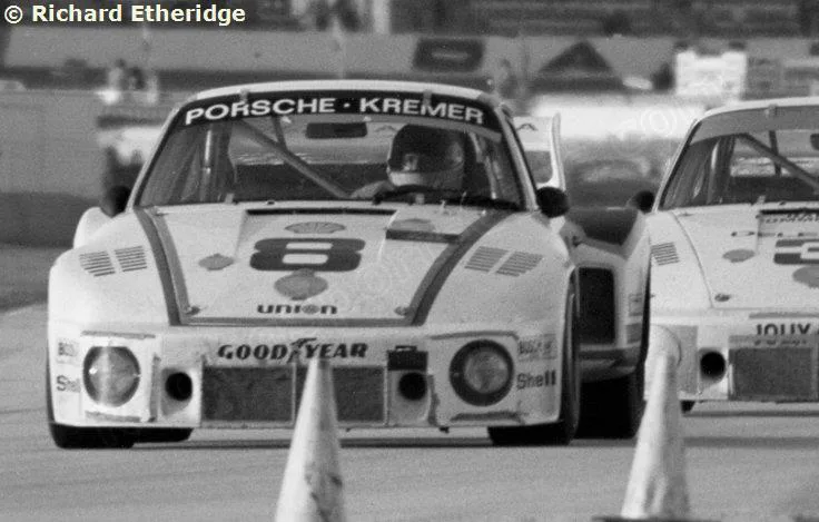 1977 Daytona 24h, Porsche 935. Porsche Kremer was present at Daytona with their brand new Porsche 935 just as Jolly Club (#3) and the Martini sponsored works car (#1). These three cars took the top 3 spots in qualifying. The Martini car crashed, Jolly had to run low boost and the Kremer car only had 4th gear in the end but still managed the last spot on the podium. Surprising to see Reinhold Joest in the line-up at Kremer.