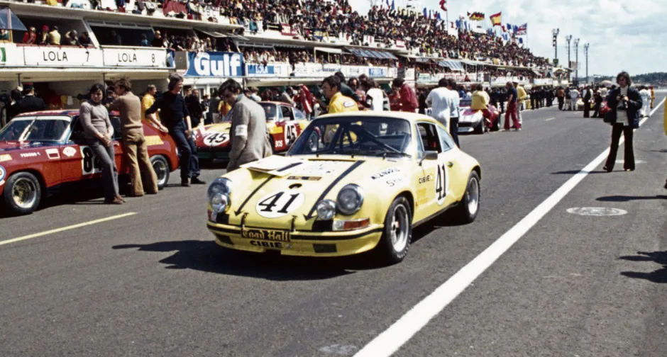 Ecurie Escargot Porsche 911 Carrera RSR – 3.0 liter Porsche flat-6, approx. 340 hp. Goodyear tires. Weight 900 kg. Steel monocoque, chassisnr. 911 560 9112