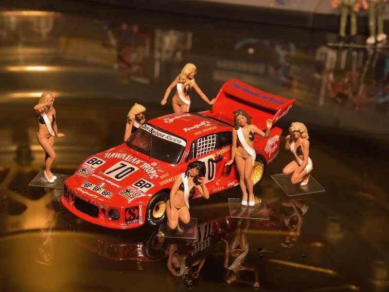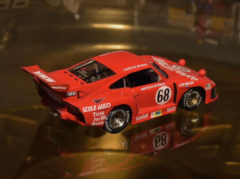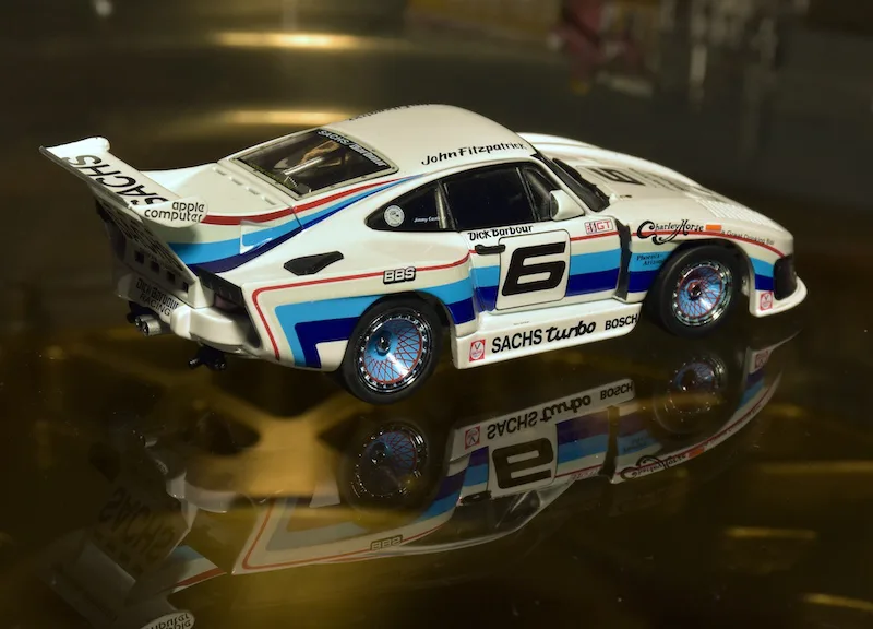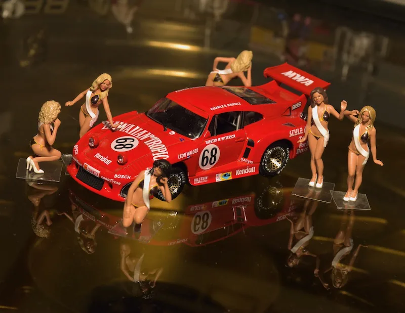 1979 Le Mans 24h, Porsche 935/79. Dick Barbour entered no less than three Porsche 935’s for this year’s Le Mans 24-hour race. The red #70 is the most famous of all. Dick drove it together with Rolf Stommelen and movie star Paul Newman (who was a far more successful racing driver than Steve McQueen). They finished second overall and won the IMSA-GTX category. Also a lot of publicity was generated because of the Hawaiian Tropic sponsorship and the sexy girls that were their promotion team.