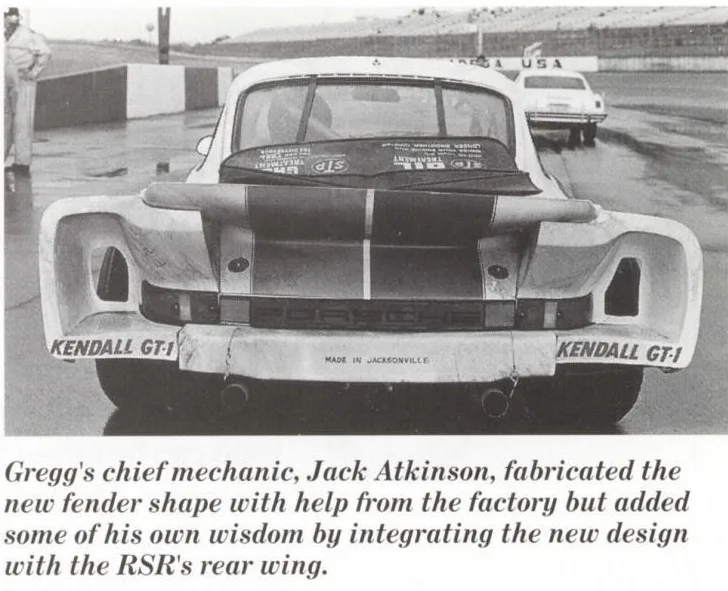 1973 Sebring 12h, Porsche 911 Carrera RSR. The evolution version of the Porsche 911, the 2.8 liter Carrera RSR was the most successful GT of its time. It made its debut win a win at Daytona a month before. Gregg and Haywood scored another win in a classic endurance race. This time in the customer RSR from Dave Helmick. Of course Gregg brought his sponsor Garrard and the experienced Brumos crew to make it possible.