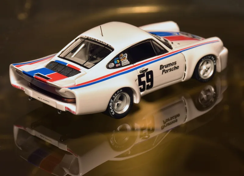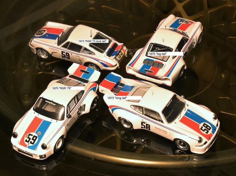 - The model is produced in two different versions with the same number; the left one has the ‘ducktail’ rear spoiler from the 1973 RSR, which is wrong. The right one with the bigger rear wing is correct.